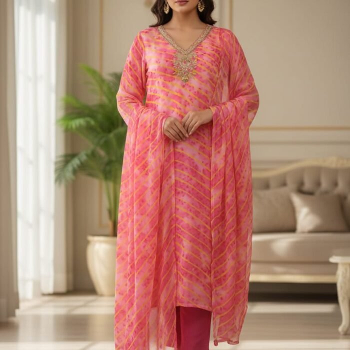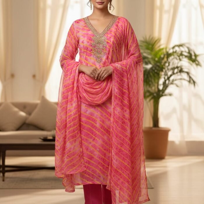 ₹2,999.00Original price was: ₹2,999.00.₹1,599.00Current price is: ₹1,599.00.Bandhej Georgette Stitched Suit Set