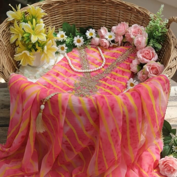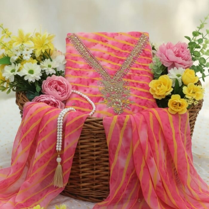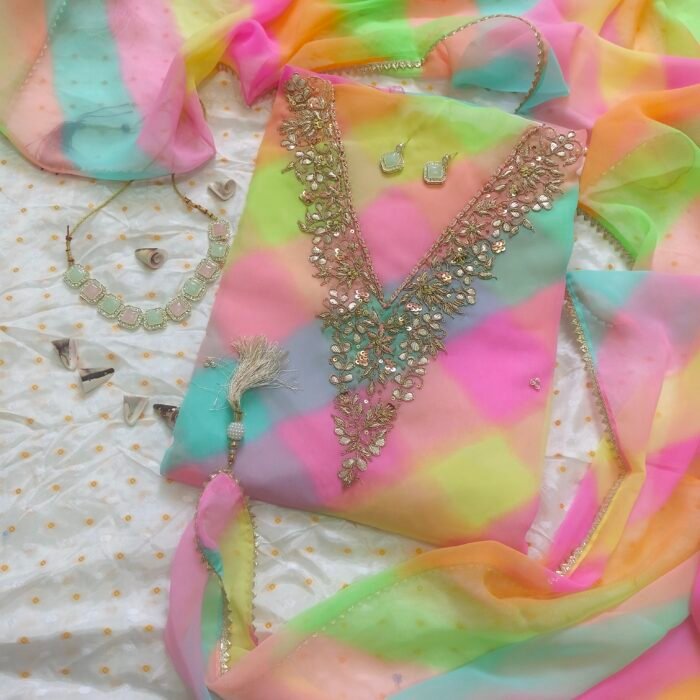 Unstitched Bandhej Georgette Suit Set